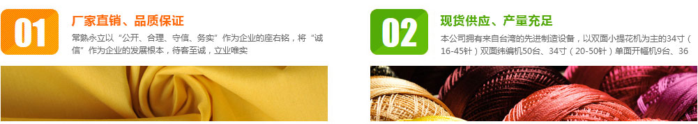 公司成立于1997年,坐落于風景秀麗的虞山腳下,位于中國經濟最活躍的版圖--長江三角洲經濟技術開發(fā)區(qū)的黃金地段上,常熟市永立針紡織有限公司,伴隨著中國針紡織品行業(yè)蓬勃發(fā)展,走過了10多年的創(chuàng)業(yè)歷程,如今已發(fā)展成為一家集工、貿于一身,在行業(yè)內聞名遐邇的專業(yè)生產滌綸針織面料的特色企業(yè)。本公司擁有來自臺灣的先進制造設備,以雙面小提花機為主的34寸(16--45針)雙面緯編機50臺、34寸(20--50針)單面開幅機9臺、36寸 22針德國邁耶OVJE雙面電腦大提花機6臺及其他先進設備。憑借著一流的設備,以及“人無我有,人有我好,人好我轉”的經營理念,常熟永立一直致力于滌綸面料的創(chuàng)新...